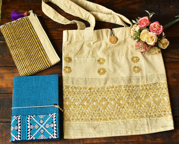 At EzaarCollective, our commitment to sustainability knows no bounds. We have embarked on a journey of upcycling, breathing new life into textile waste from other handloom manufacturers. We're excited to introduce our collaboration with esteemed brands like Buta Axom and Porisoi in Assam, where their discarded fabrics are reborn as sustainable utility products.