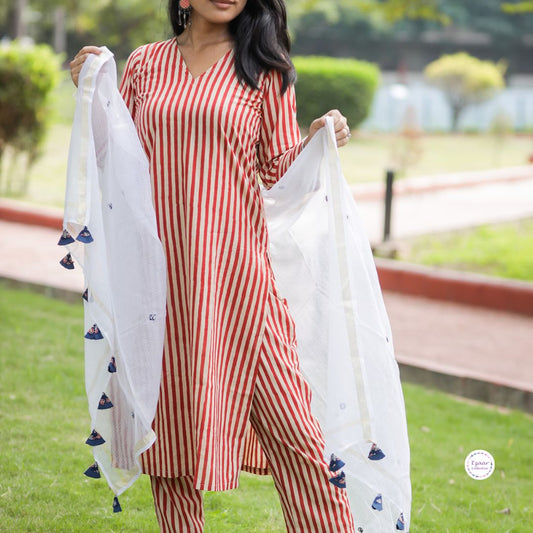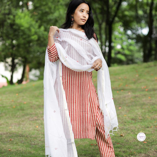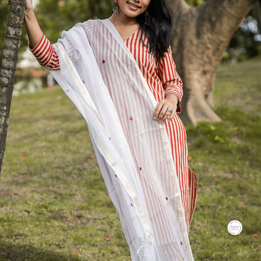 Experience the exquisite craftsmanship of our handcrafted Kota Doria Dupatta, a perfect choice for the...