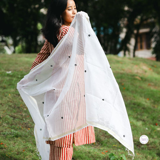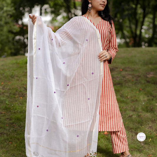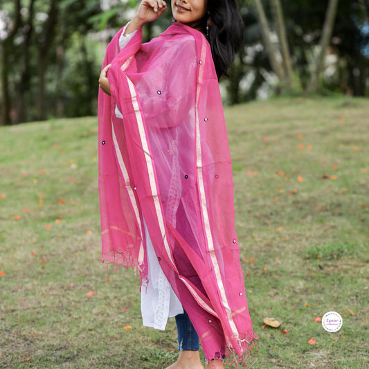 Experience the exquisite craftsmanship of our handcrafted Kota Doria Dupatta with beautiful mirror work with...