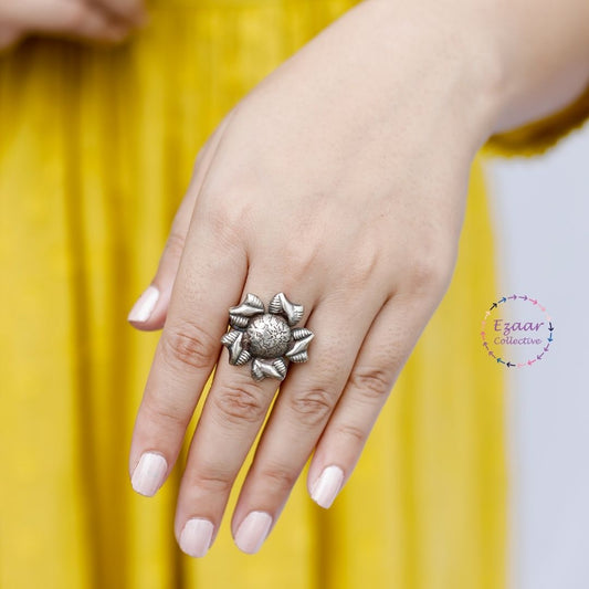 Wear a showstopper on your finger with our Pushpa Ring! This statement finger ring is...