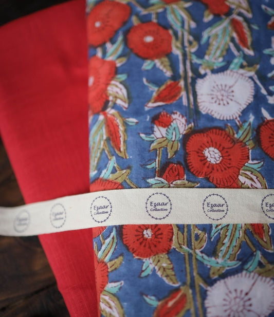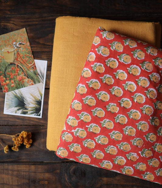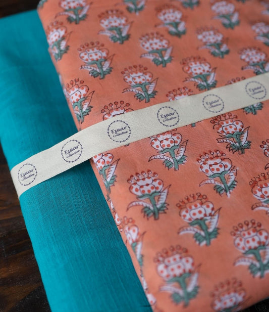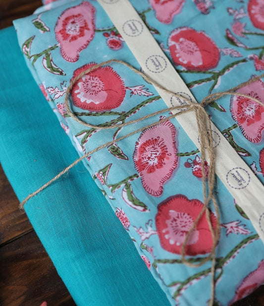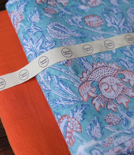 Luxuriate in comfort with this luxurious combo of sanganeri block print top and solid slub...