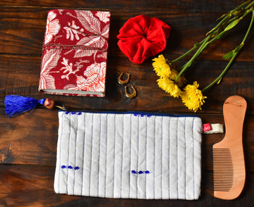 From Waste to Wonder: The discarded fabric waste is transformed into practical and eco-friendly products. Our artisans skillfully craft every piece, be it pouches, scrunchies, or coaster sets, with meticulous care.