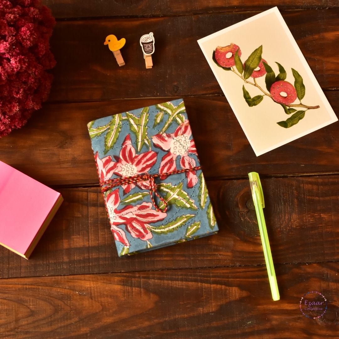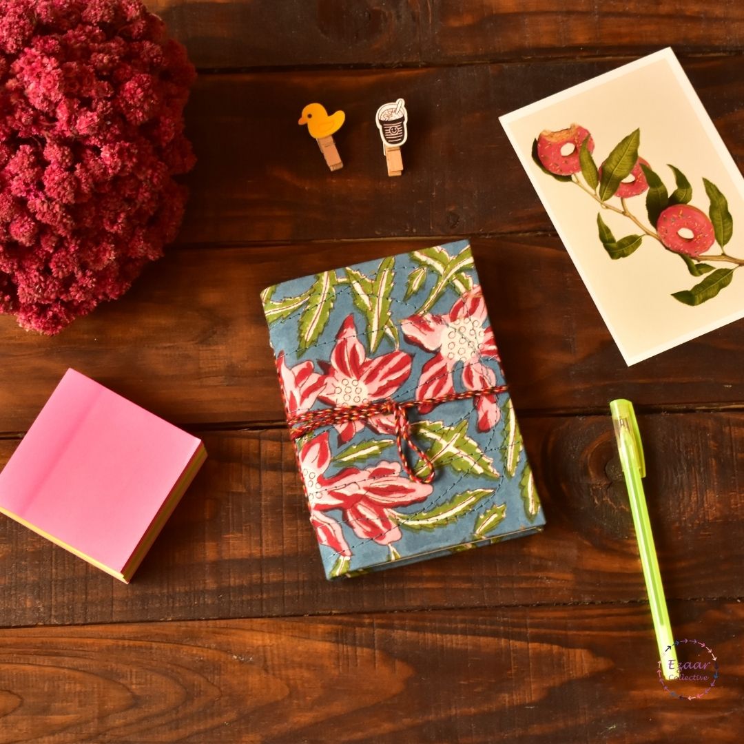 Covered in handcrafted cotton fabric, these diaries come with a cotton string that can also be used as a bookmark.