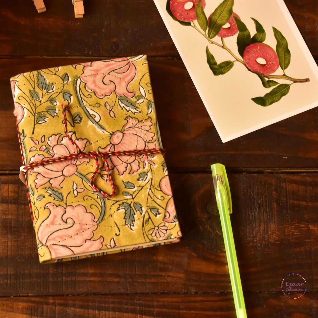 Covered in handcrafted cotton fabric, these diaries come with a cotton string that can also be used as a bookmark.