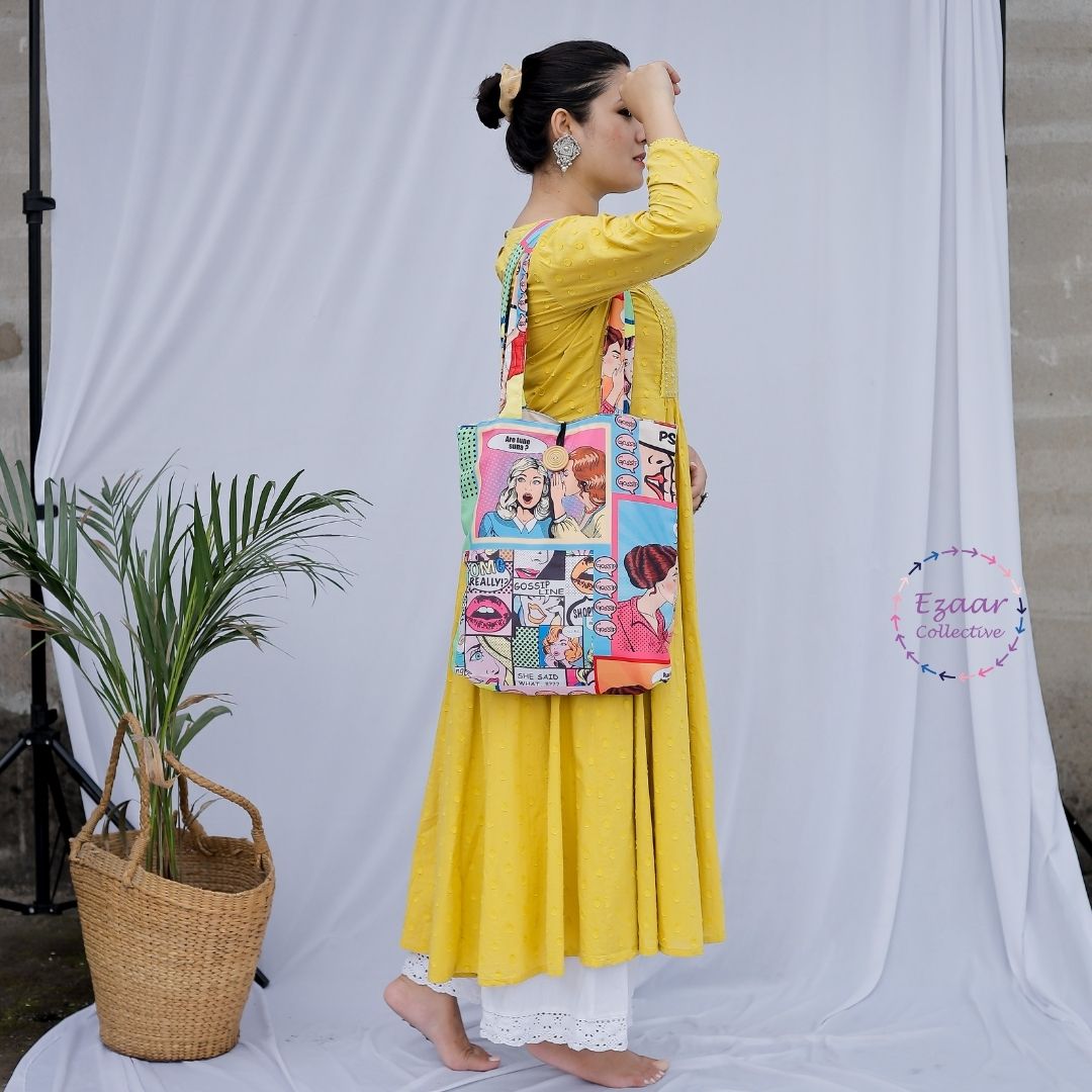 This Gossip Girl tote bag is perfect for the fashion-forward fan. Its quirky print and inside pocket for mobile phones make it both stylish and functional. Keep your essentials close at hand while showing off your love for the iconic show. It is perfect for everyday use at the office. Handstitched by artisans.