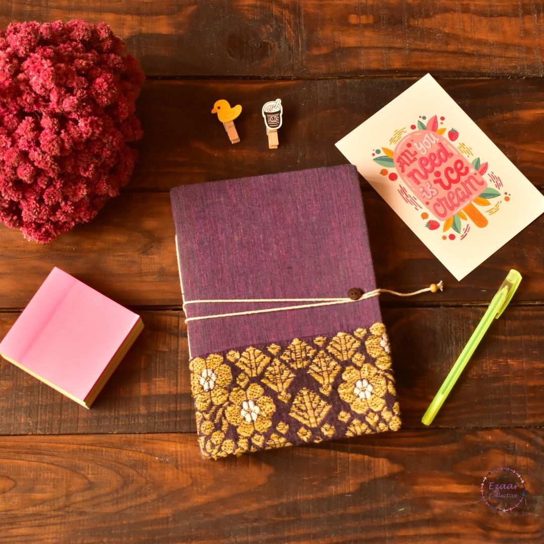 Covered in handcrafted cotton fabric, these diaries come with a cotton string that can also be used as a bookmark.