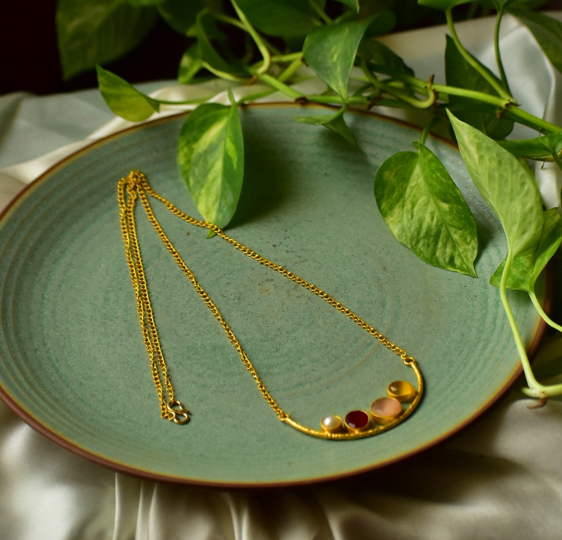Adorn yourself with the beauty of the Pamila Necklace--a piece of timeless finesse crafted with an elegant pendant that sparkles with hints of shimmering gold dust. Revel in its delicacy and sophistication as you show the world your effortless and exquisite style.