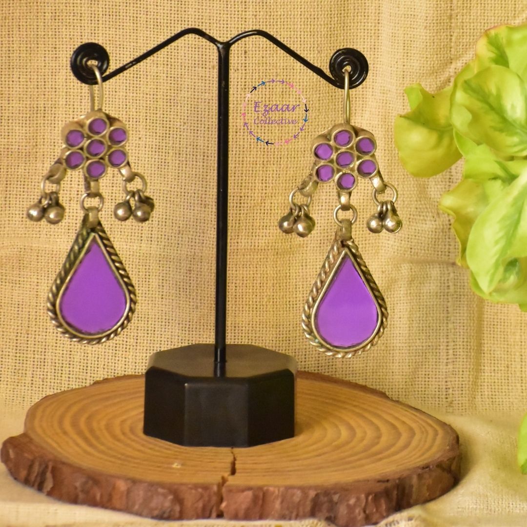 Rajiva Earrings are a luxurious statement piece, crafted with care and skill. The handcrafted oxidised frames with glass are guaranteed to make a bold, stylish impression. Let your look be timeless and classic with these unique, timeless earrings.