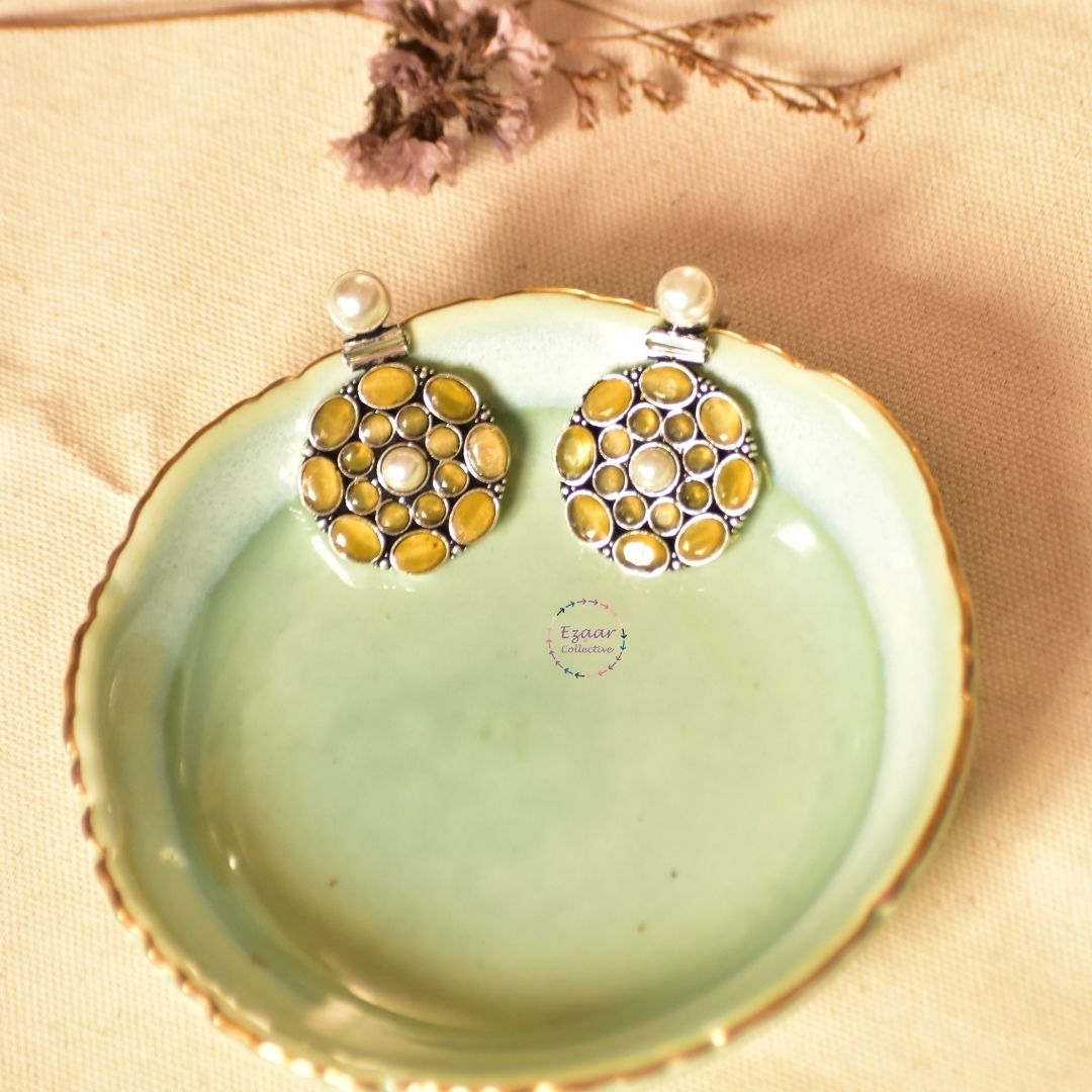 Elevate your ethnic charm with our silver lookalike earrings. Crafted with precision, these ornate earrings blend tradition and contemporary style effortlessly. The intricate design and lustrous brass metal give a timeless allure to your look. Perfect for weddings, festivals, or everyday elegance, these earrings make a statement of sophistication.