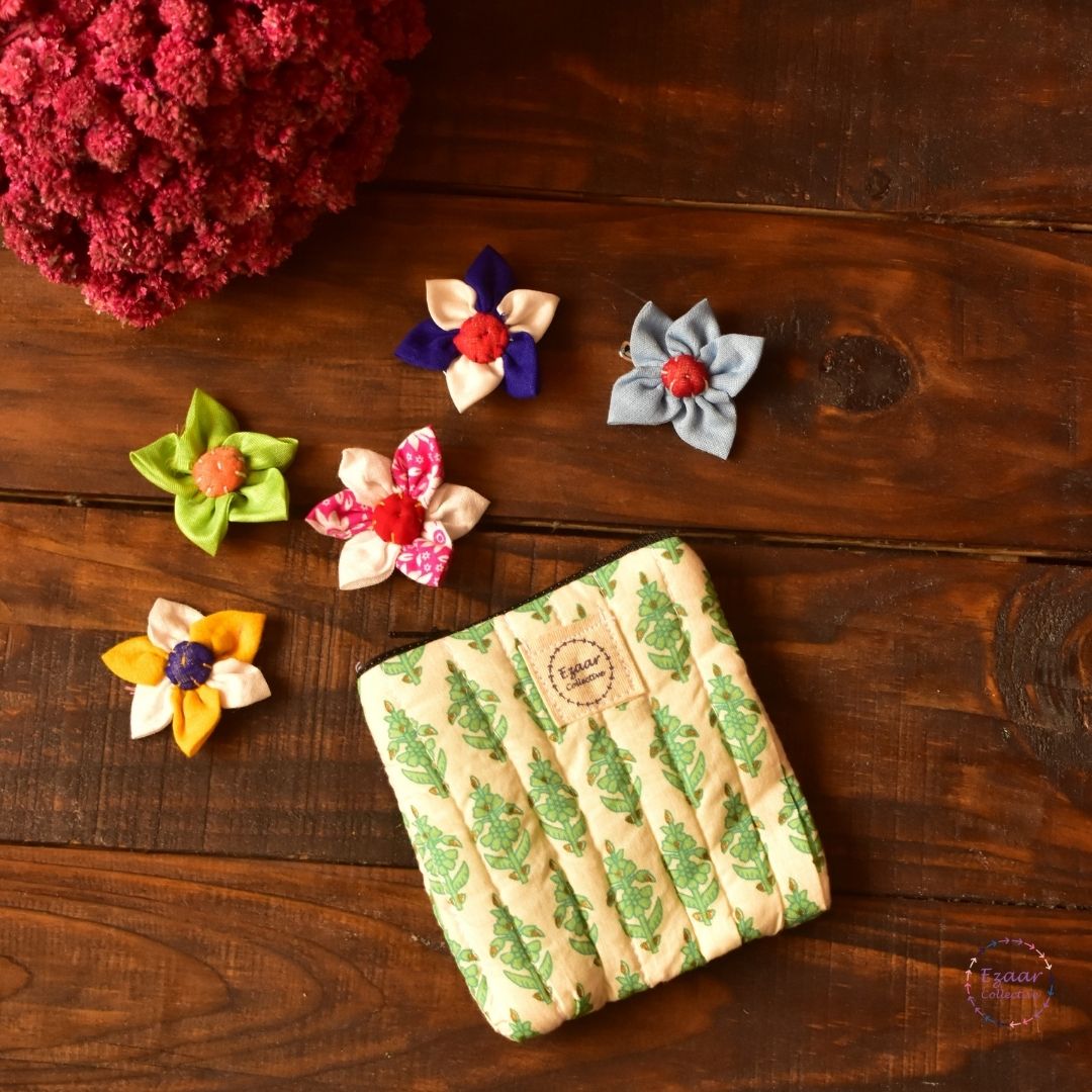 Block Print Coin Pouch Green