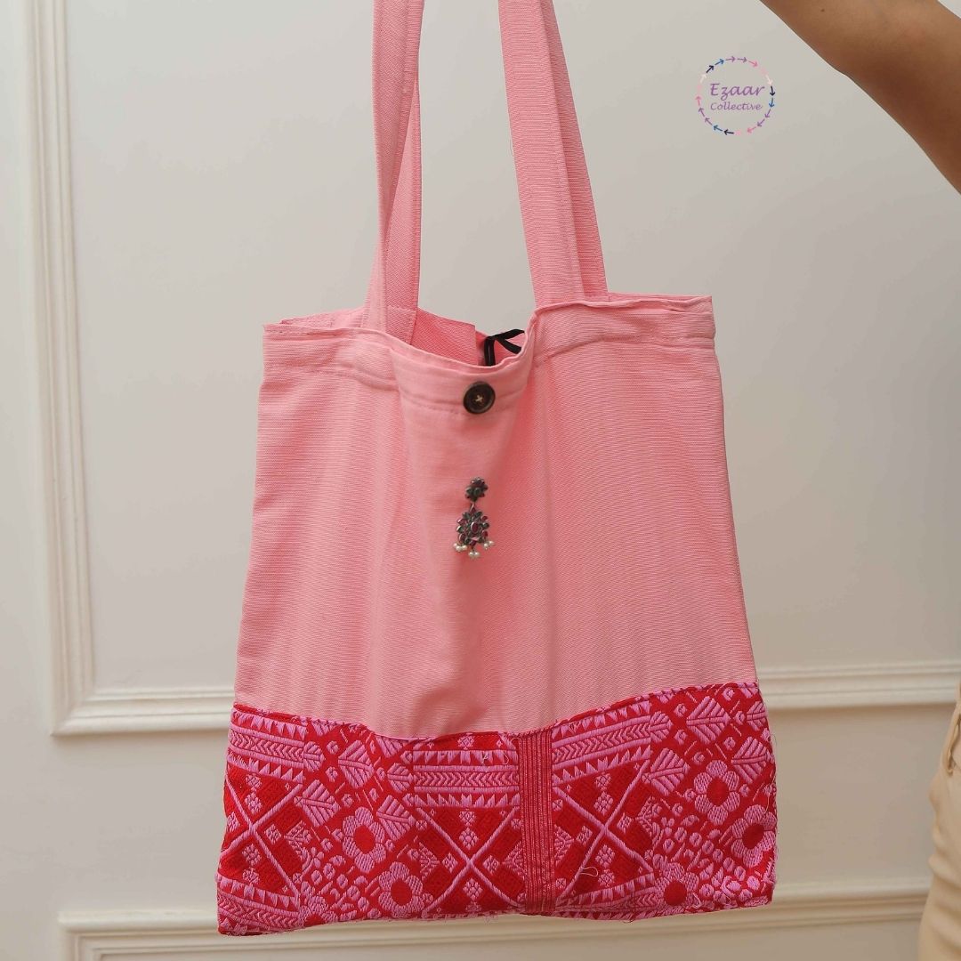 Our upcycled tote bag is a blend of sustainability and style, crafted from rich handloom waste and fabric scraps. Spacious, sturdy, and versatile, it’s perfect for carrying your daily essentials with ease. Each bag tells a story of mindful fashion and conscious choices. Carry sustainability on your shoulder, one tote at a time!