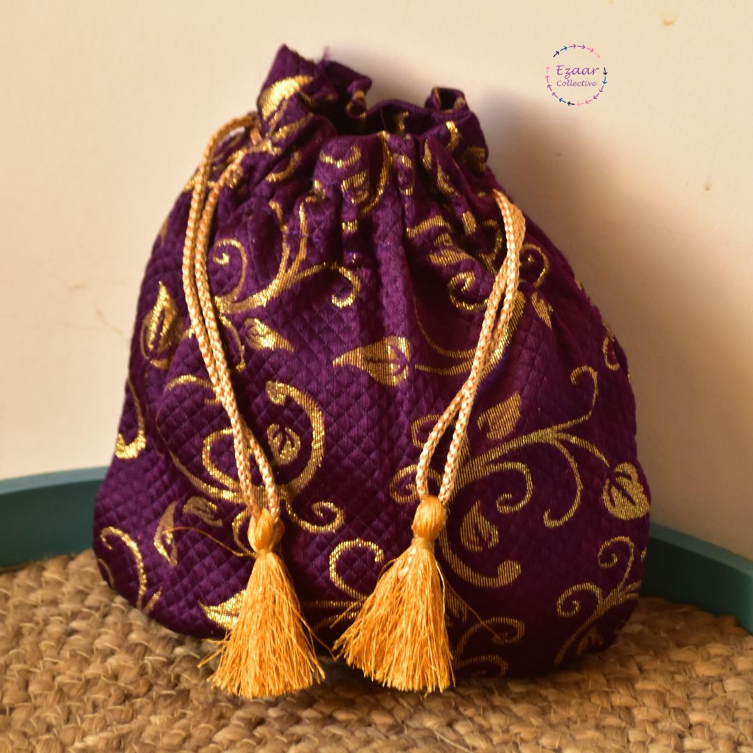Carry your essentials in style with our Upcycled Potli Bag! Made from handloom waste of Assam, this bag features traditional Assamese motifs in premium Eri yarn. Perfect for any festive occasion, it also comes with tassels for added flair. Stay sustainable and fashionable with this versatile bag.